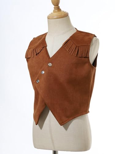 renvena Cowboy Western Suit Vest for Boys Halloween Brown Suede Dressy Waistcoat with Tassels 1