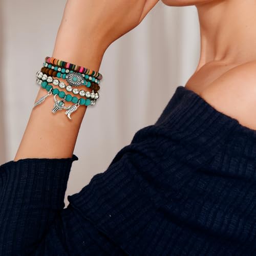 EVKILKJS Western Bracelets for Women Cowgirl Turquoise Beaded Bracelets Stackable Bracelet for Women Jewelry Bohemian Country Concert Cowboy Outfit Accessories 7