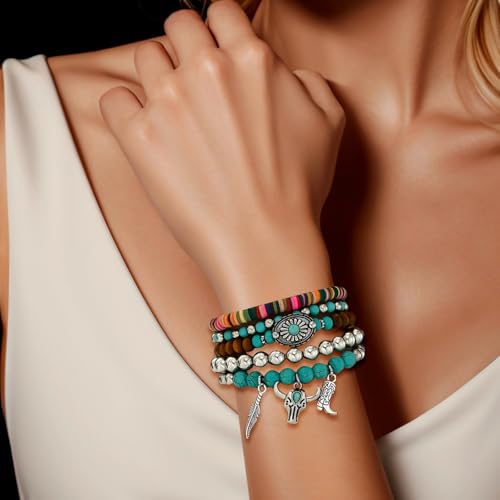 EVKILKJS Western Bracelets for Women Cowgirl Turquoise Beaded Bracelets Stackable Bracelet for Women Jewelry Bohemian Country Concert Cowboy Outfit Accessories 3
