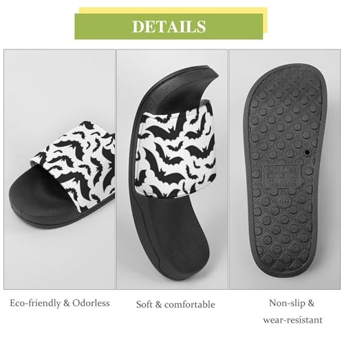 HOT ! Spooky Halloween Bats Black Womens Slide Sandals Non Slip Summer House Slippers for Girls Slip-on Flip Flops