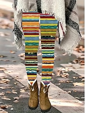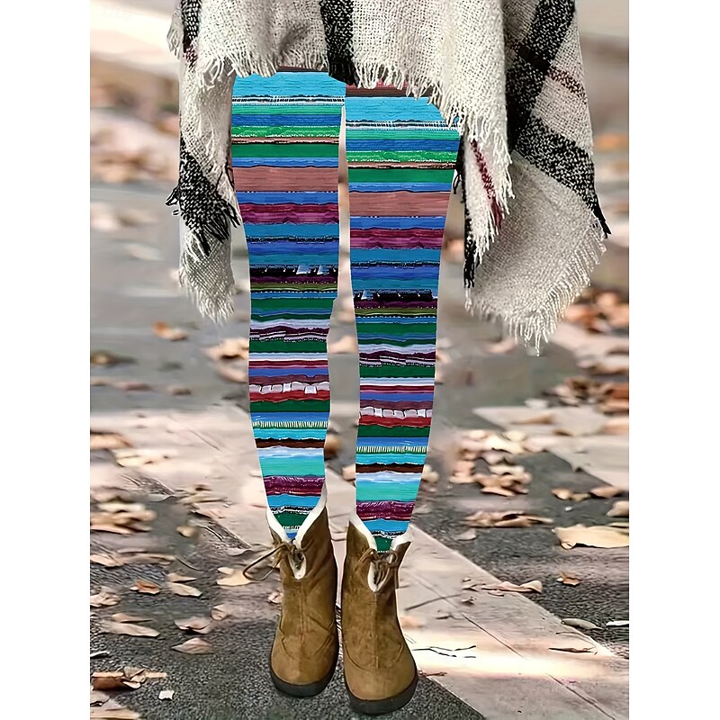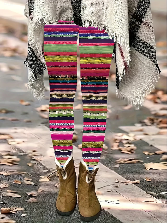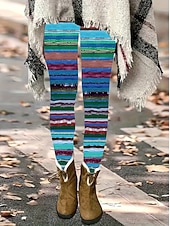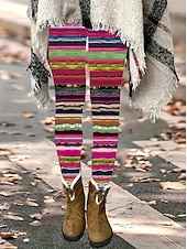 More information about Women's Leggings Vacation Vintage Fashion Full Length High Waist Graphic Striped Printing Thermal Warm Soft Breathable High Elasticity Outdoor Vacation Street Pink Blue Orange Spring Fall Winter Slim