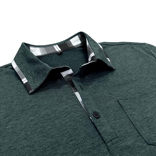 Maiyifu-GJ Men's Stylish Checkered Collar Henley Shirts Summer Lightweight Tees Pocket Casual Business Tops (Green,Large) 6