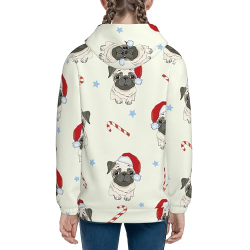 Christmas Pug Dog Kids Pullover Hoodies Boys Zip Up Sweatshirts Girls Athletic Clothes with Pocket 5