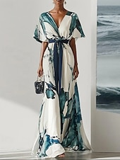 More information about Women's Long Dress Maxi Dress Floral Dress Print Dress Fashion Modern Outdoor Vacation Holiday Regular Fit Flower Short Sleeve V Neck White Summer