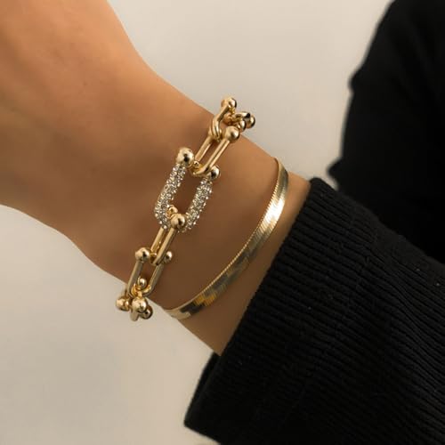 More information about Gangel Gold Link Bracelet Dainty Gold Plated Bracelets Layered Snake Chain Bracelet Simple Trendy Adjustable Bracelet Jewelry for Women