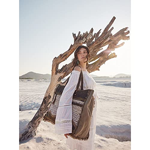 More information about Myra Bag Western Leather Weekender Bag for Women - Cotton & Upcycled Canvas Boho Shoulder Bag Losi