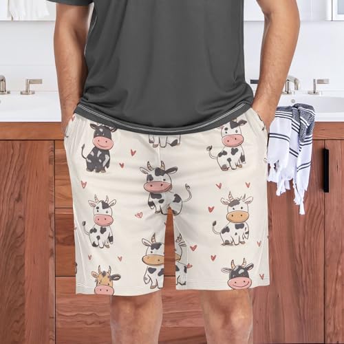 Cartoon Cows Love Pajama Bottom Shorts for Men Soft Casual Sleep Lounge Shorts with Pockets S-XXL 1