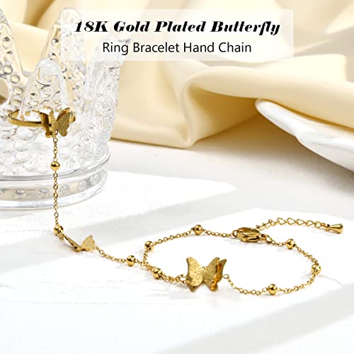 HOT ! Gold Bracelets for Women, 18K Gold Plated Hand Chain, Cubic Zirconia Stainless Steel Non Tarnish Hand Chain Bracelet with Finger Ring, Adjustable Trendy Jewelry Valentines Day Gifts for Women