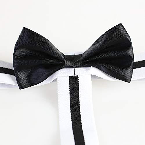 • [Fashion Design] Handsome bowtie design suspender style G-string thong, stretchy white and black straps make the briefs more powerful and sexy.