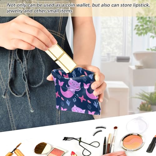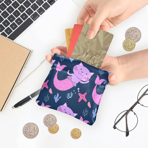 Mermaid Cats Coin Purse Leather Pouch Change Purse, Squeeze Coin Pouch for Cards, Keys & Lipsticks, Unisex 7