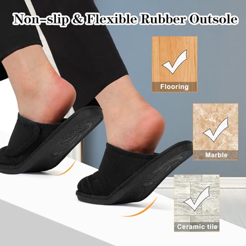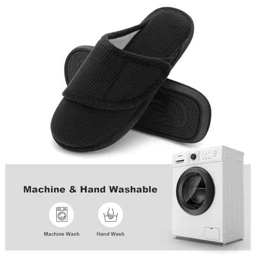 Besroad Mens Slippers Memory Foam House Slippers Adjustable Diabetic Shoes Corduroy Bedroom Slides House Shoes Indoor Outdoor 6