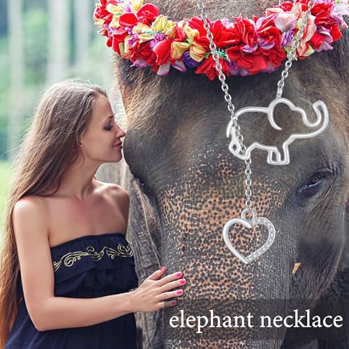 Elephant Y-Necklace 925 Sterling Silver Animal Lariat Necklace Jewelry Heart and Elephant Gifts for Women 4