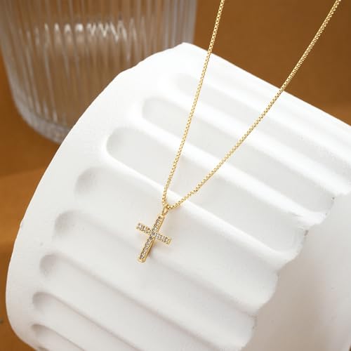 HOT ! Cross Necklace for Women, Dainty 14K Gold Cubic Zirconia Pendant Cross Necklaces Simple Cute Tiny Gold Jewelry
