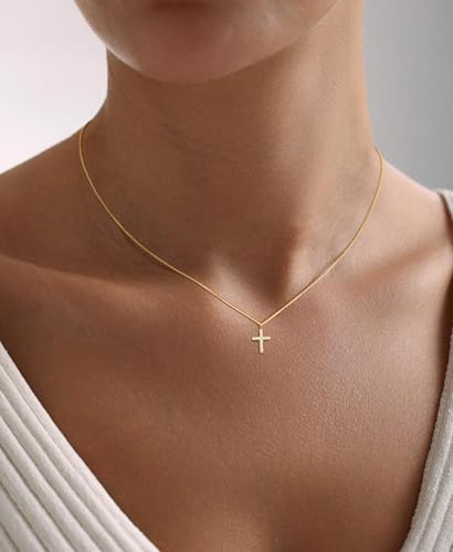 Cross Necklace for Women, Dainty 14K Gold Cubic Zirconia Pendant Cross Necklaces Simple Cute Tiny Gold Jewelry 7
