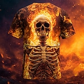 More information about Halloween Men's Optical Illusion Hellfire Flames 3D Skeleton T Shirt Short Sleeve T shirt 3D Print Crew Neck Shirt Exaggerated Designer Horror Party Street Holiday Orange 3 Orange Orange 2 Summer