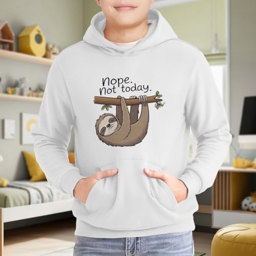 Kids Funny Not Today Sloth Boys Girls Lightweight Kangaroo Pocket Fleece Hoodies 6