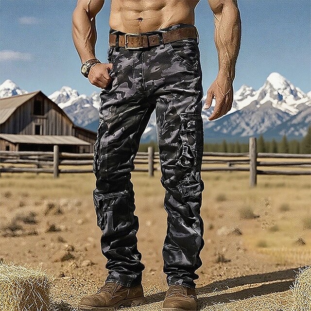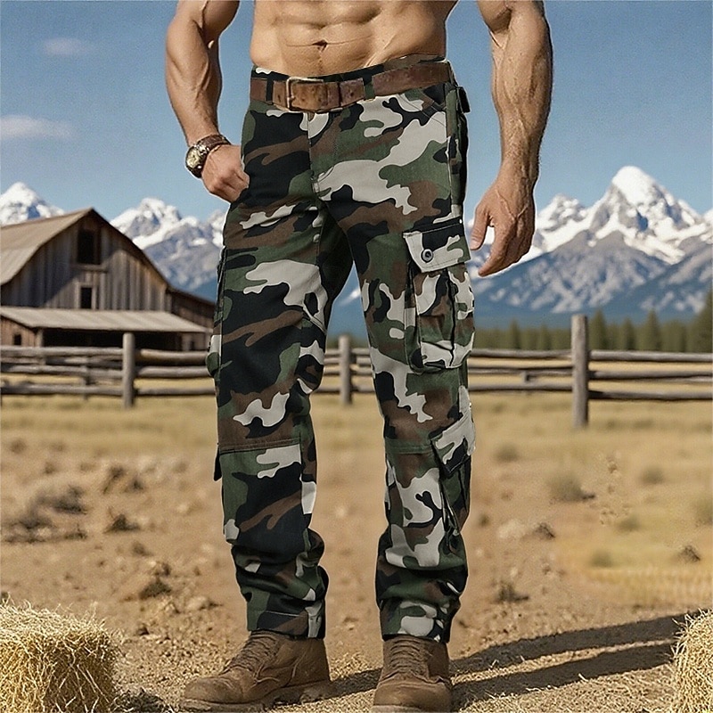 HOT ! Men's Cargo Pants Trousers Hiking Pants Camo Pants Buttons Multi Pocket Camouflage Wearable Outdoor Daily Camping & Hiking Fashion Classic Camouflage khaki Black