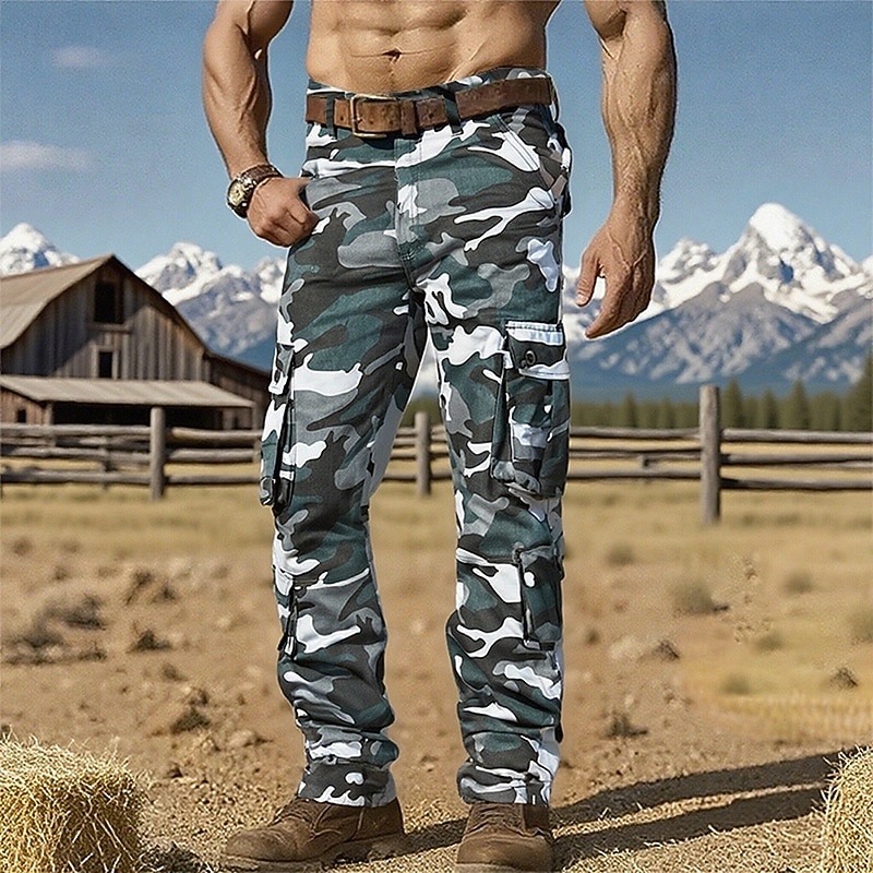Men's Cargo Pants Trousers Hiking Pants Camo Pants Buttons Multi Pocket Camouflage Wearable Outdoor Daily Camping & Hiking Fashion Classic Camouflage khaki Black 11