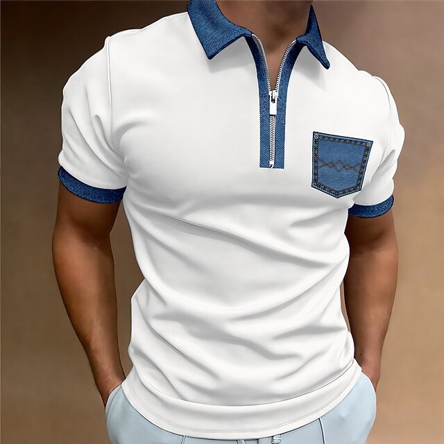 More information about Men's Polo Shirt Golf Shirt Casual Holiday Lapel Quarter Zip Short Sleeve Fashion Basic Color Block Quarter Zip Summer Regular Fit Black White Blue Beige Gray Polo Shirt