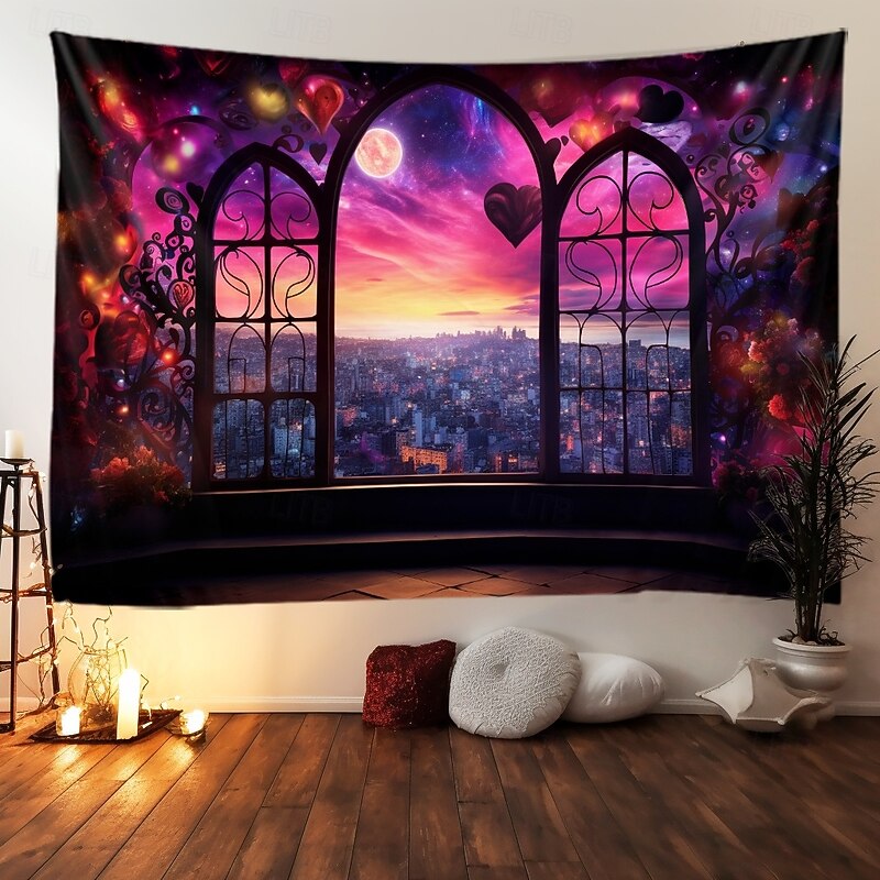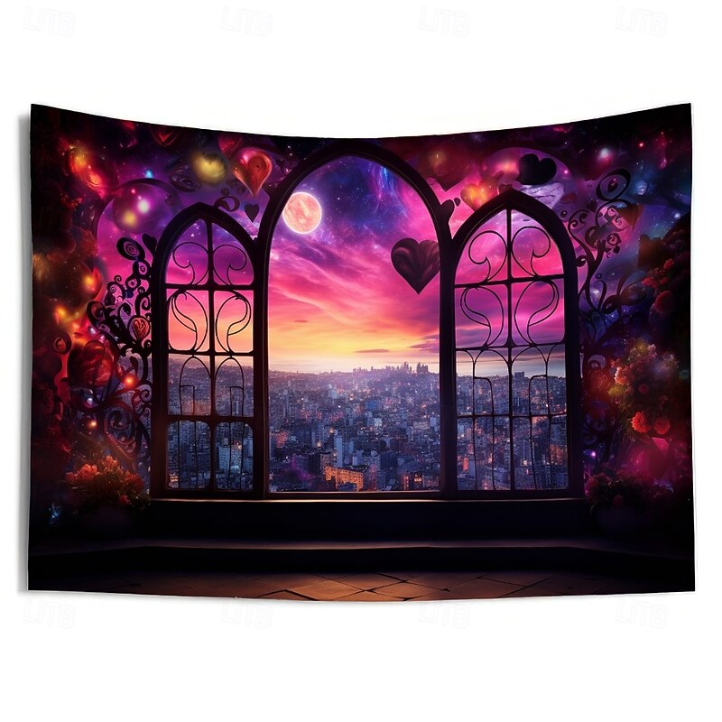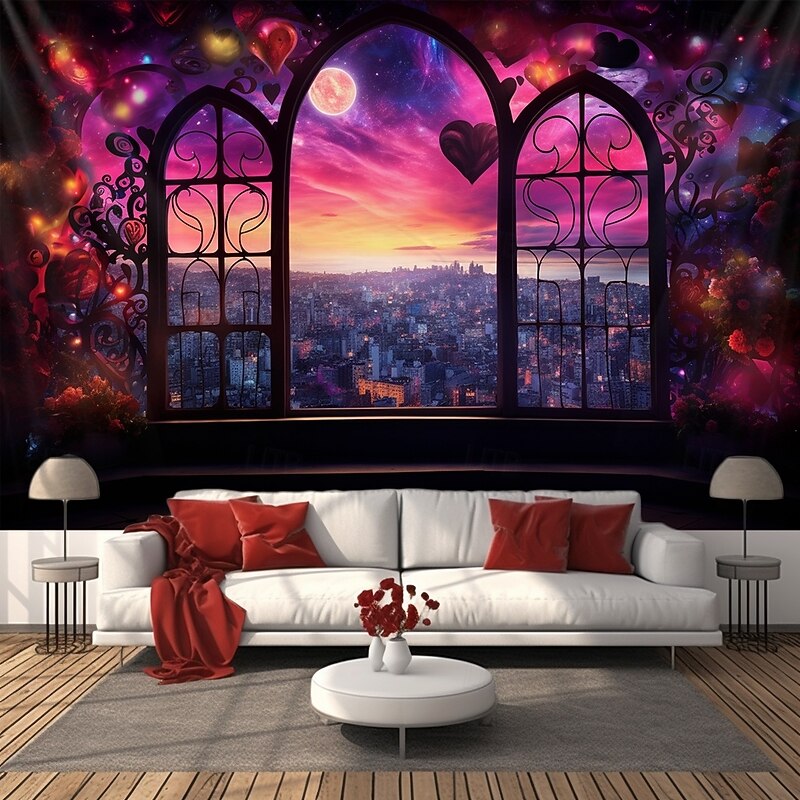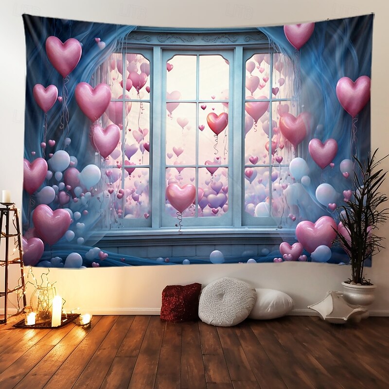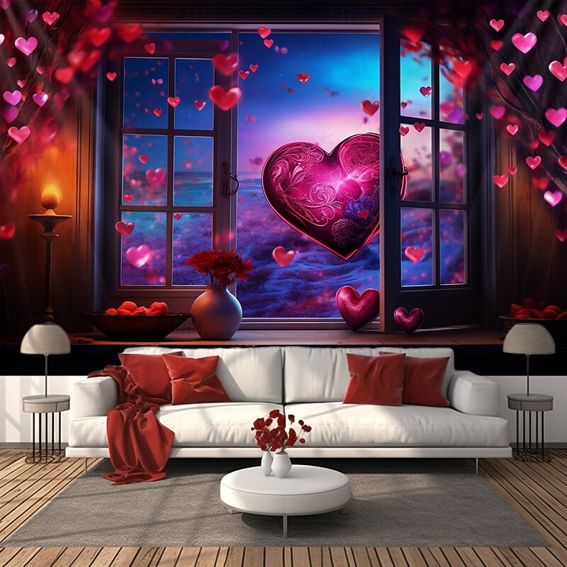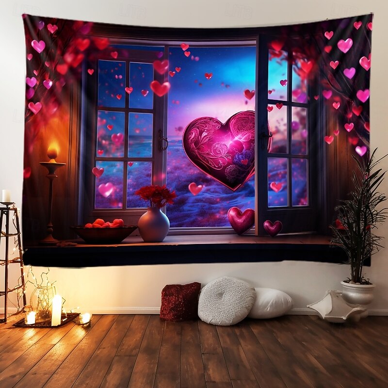 Highlights [Fabric] : Crafted from high-quality polyester, this Valentine's Day Hanging Tapestry ensures durability and vibrant color retention. The soft texture allows for easy draping, making it suitable for various uses from wall decor to unique curtains. [Design] : The tapestry showcases a breathtaking scene of a vibrant pink and red sunset, silhouetted by a couple holding hands, creating a romantic atmosphere. Floating hearts in the sky add a whimsical and heartfelt touch, perfect for enhancing the feel of love and warmth in any room. [Design Highlights] : A large rectangular shape offers versatility in placement, whether it be on walls or as an innovative bedspread. The classic style seamlessly complements both modern and traditional interiors, making it a staple piece of decor. [Occasions] : Ideal for infusing romantic charm into bedrooms and living rooms, this tapestry is perfect for Valentine's Day celebrations, anniversaries, or as a thoughtful gift for loved ones. Its timeless design adds elegance to special moments and everyday settings alike. [Size Range] : Available in the size of 150cm by 130cm, this tapestry fits a wide range of spaces, easily adapting to enhance your home’s aesthetic.