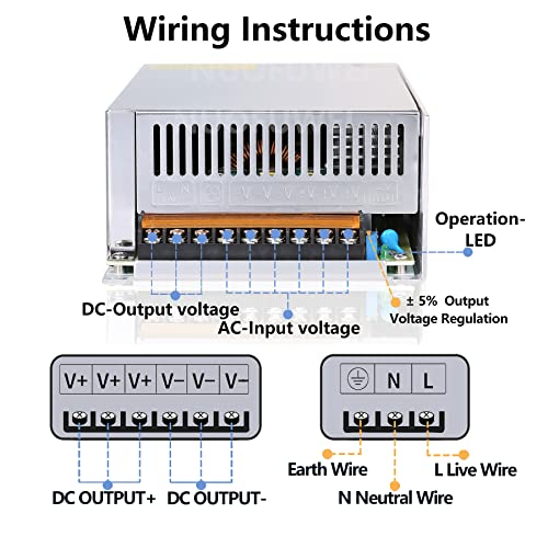 • 【USED WIDELY】DC 12V Power Supply Used for industrial automation equipment, radio,Amplifier,Radios,LED drive, CCTV Camera System, 3D Printer, Car Stereos, water Pump and more 12V Device. NOTE:Not suitable for charging Battery,Speed Control Motors.