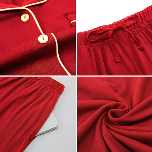 Matching Pajamas for Couples, Button Up Pjs Set for Men and Women Soft Warm Loungewear(Red Men, Small) 4