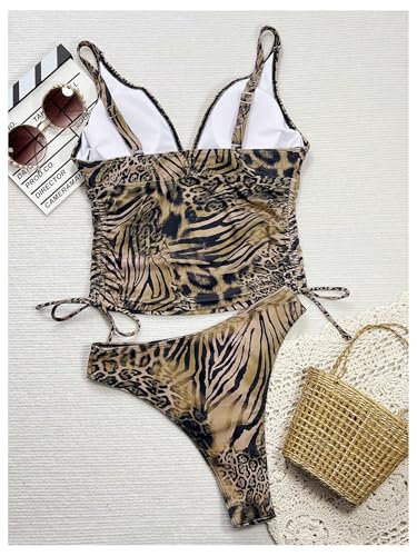 More information about Women's 2 Piece Leopard Print Tankini Set Ruched Drawstring High Cut Bathing Suit