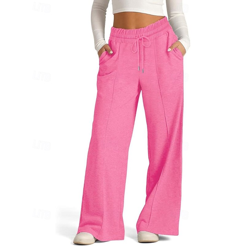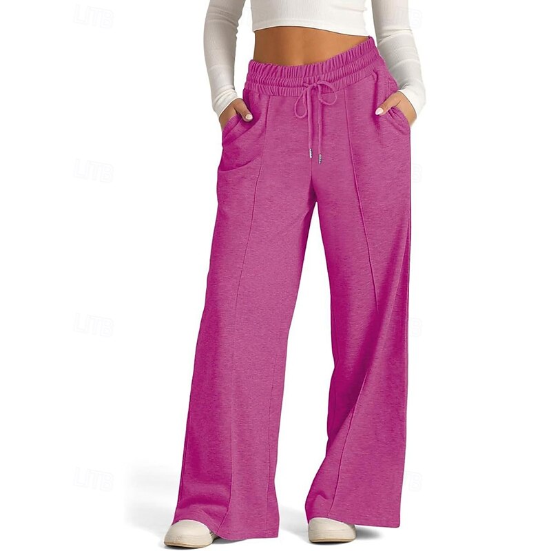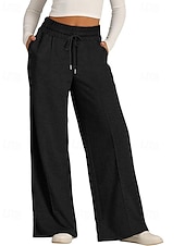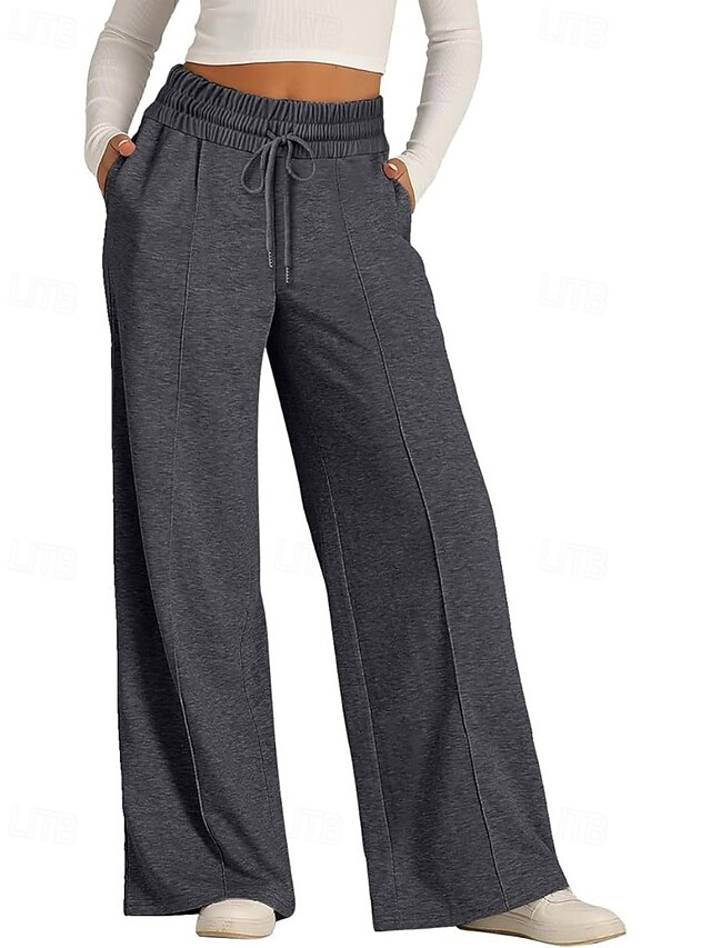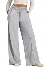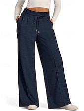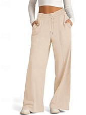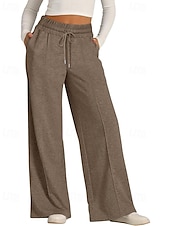 More information about Women's Wide Leg Slacks Streetwear Casual Full Length Natural Plain Pocket Elastic Drawstring Design Comfortable Street Daily Wear Weekend Dark-Gray Apricot Dark Brown Black Fall Regular Fit