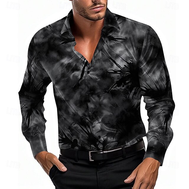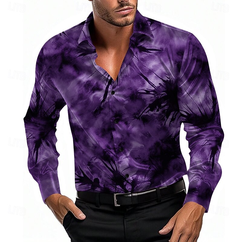 More information about Men's Satin Shirt Button Up Shirt Tie Dye Vacation Party Evening Wear Black Blue Purple Long Sleeve Collared Shirts Summer Spring Clothing Apparel Button Up