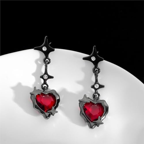 HOT ! Gothic Heart Dangle Earrings for Women, Goth Black Red Heart Studs Drop Earrings, Emo Punk Y2k Goth Accessories for Women