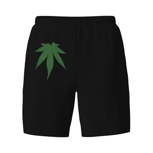 Cannabis Leaf Mens Double Layer Swim Trunks Summer Casual Board Shorts 1