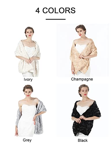 BEAUTELICATE Faux fur Shawl For Women Wedding Bridal Wrap Stole Shrug Warm Winter Cover Up for Evening Dress 7