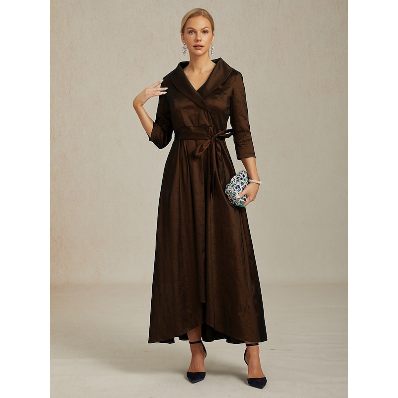 More information about Women's Maxi long Dress Party Dress Elegant Vintage Regular Fit Solid Color 3/4 Length Sleeve V Neck Brown Fall Winter