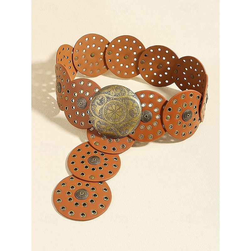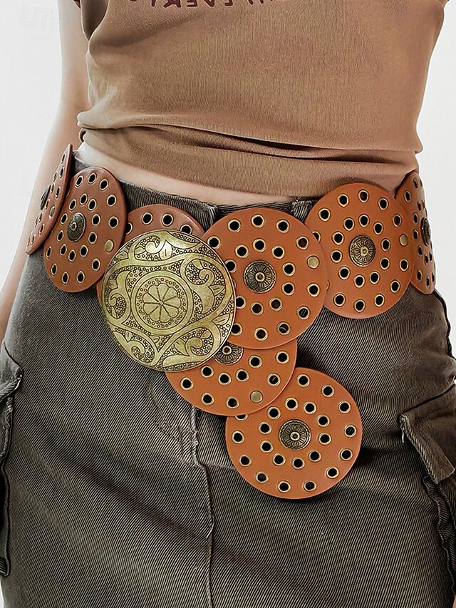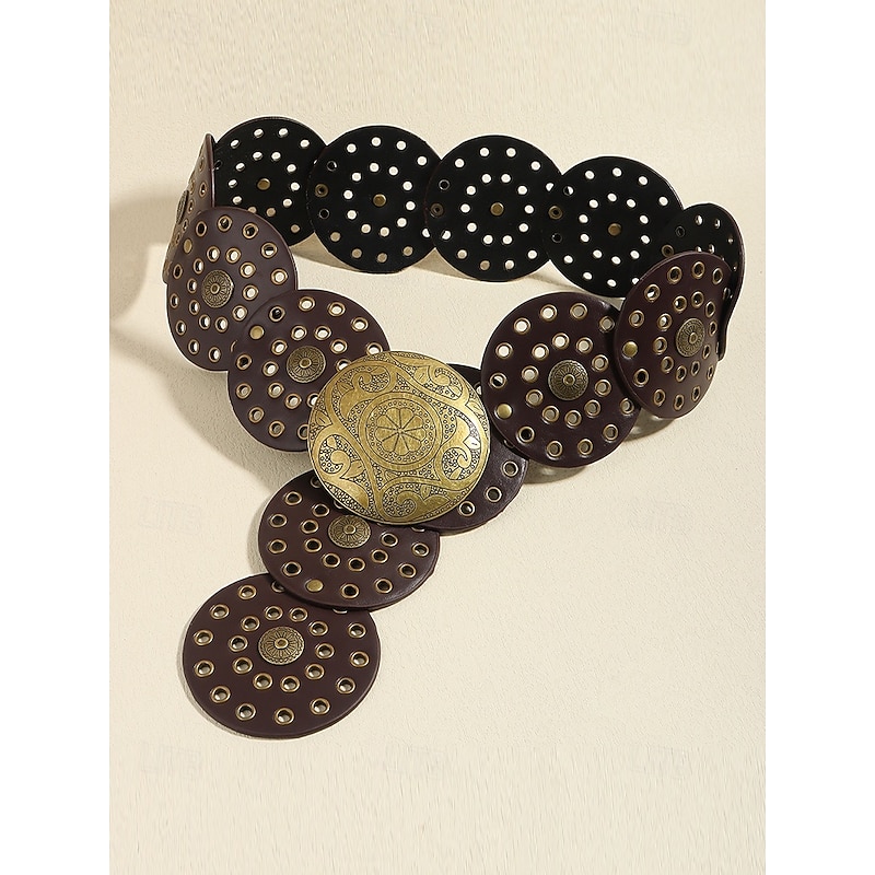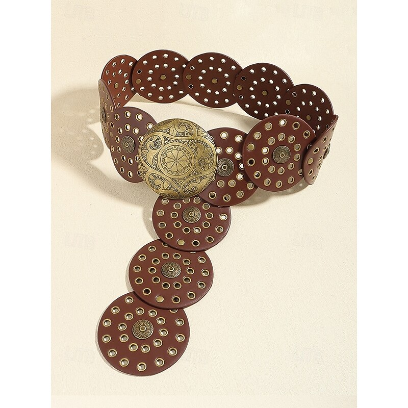 $18.99 - Women's Brown Faux Leather Belt with Perforated Circles and Intricate Metal Buckle - Bohemian Chic Fashion Accessory 2025. Shop for cheap Women's Belt online? Buy at lightinthebox.com on sale today!