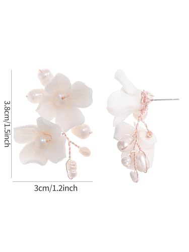 Handmade Ceramic Flower Pearl Stud Earring Drop, White Wedding Prom Accessories Post Earrings Jewelry for Brides Women 3