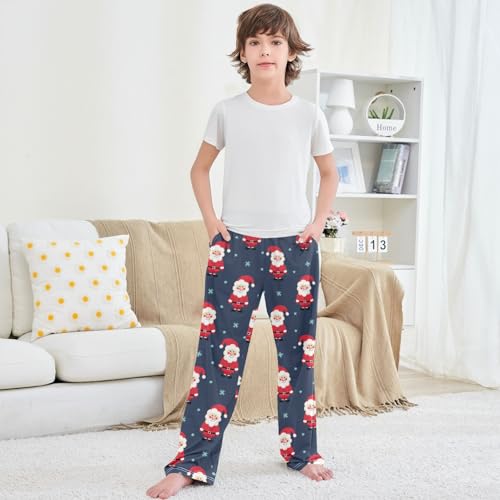 Boy's Lounge Pants Funny Santa Claus Snow Stars Kids Jogger Pants Elastic Waist Long Bottoms with Pockets 6-14 Years 7