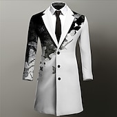More information about Men's Butterfly Winter Coat Overcoat Coat Warm Comfortable Breathable Business Work Wear to work Going out Pocket Print Fall & Winter Turndown Long Sleeve Black Purple Green