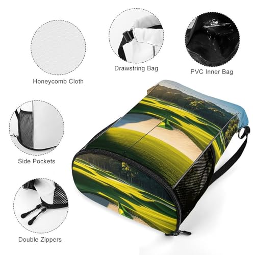 HOT ! Green Golf Course Drawstring Backpack, Dry Wet Separate Gym Bag Unisex Sports Drawstring Bag for Work, Fitness