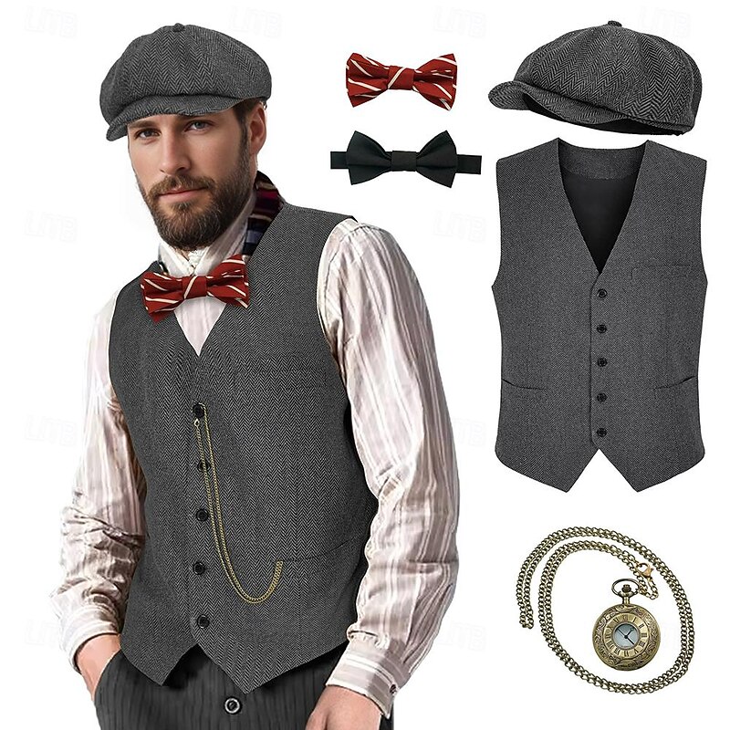 $47.99 - Retro Vintage Roaring 20s 1920s Outfits Waistcoat Gentleman Gangster Fancy Dress Men's Halloween Carnival New Year Carnival Party / Evening Masquerade Adults' Cravat Vest Hat All Seasons 2025. Shop for cheap Outfits online? Buy at lightinthebox.com on sale today!