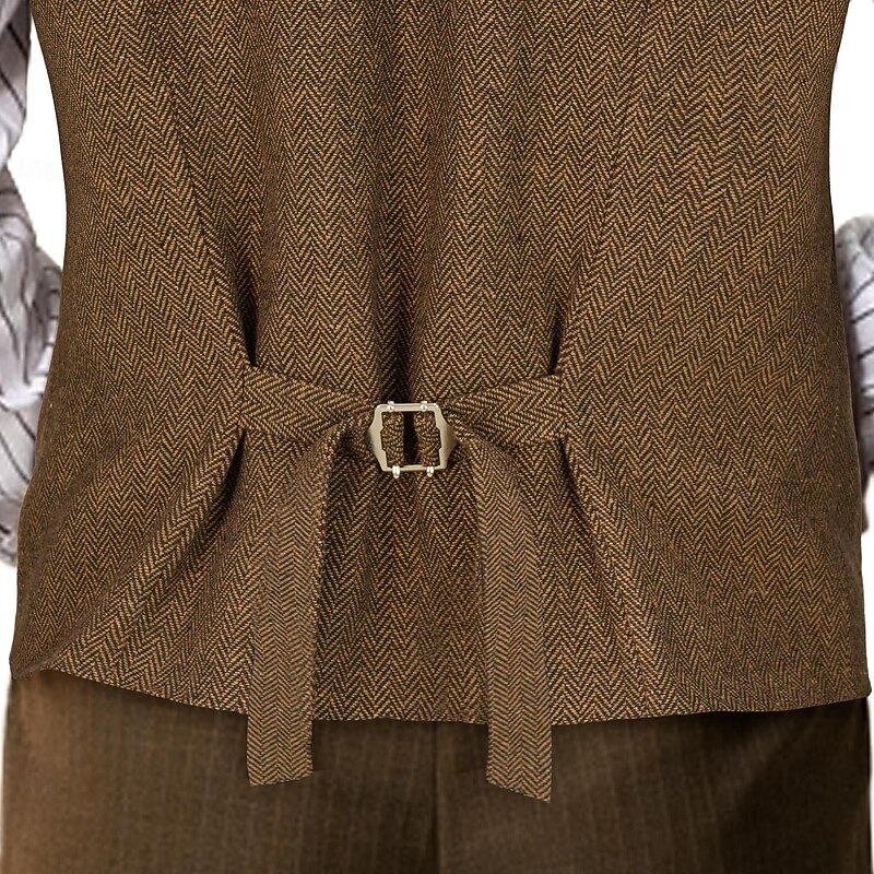 Retro Vintage Roaring 20s 1920s Outfits Waistcoat Gentleman Gangster Fancy Dress Men's Halloween Carnival New Year Carnival Party / Evening Masquerade Adults' Cravat Vest Hat All Seasons 6