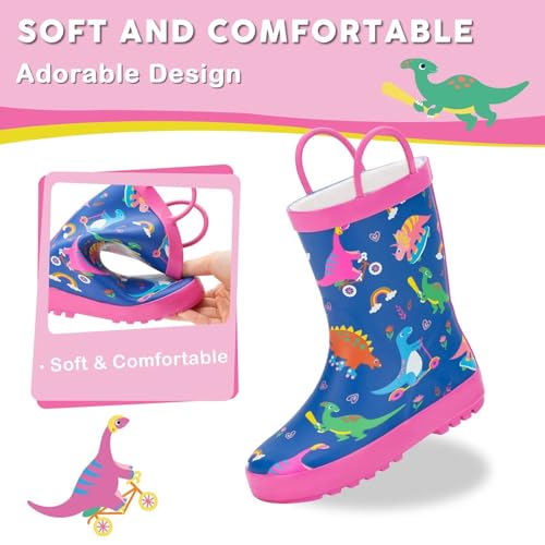 Toddler Rain Boots Kids Waterproof Rubber Boots for Boys and Girls with Handles in Fun Pattern 6