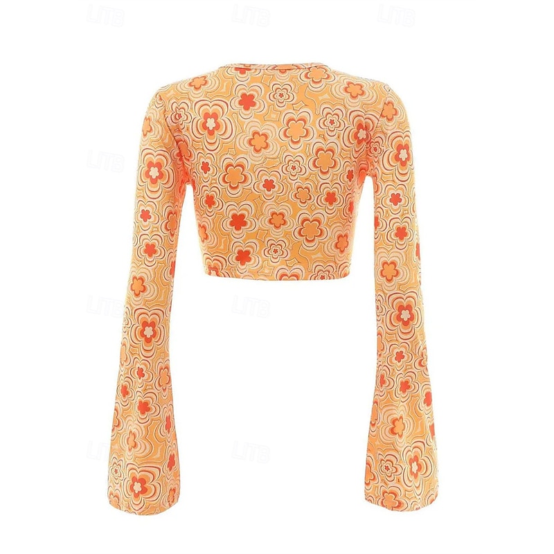 Retro Vintage 1970s Outfits Crop Top Bell Bottom Pants Hippie Bow Tie Floral Fancy Dress Women's Halloween Carnival Masquerade Party Daily Wear Adults' Top Pants Spring & Summer 6