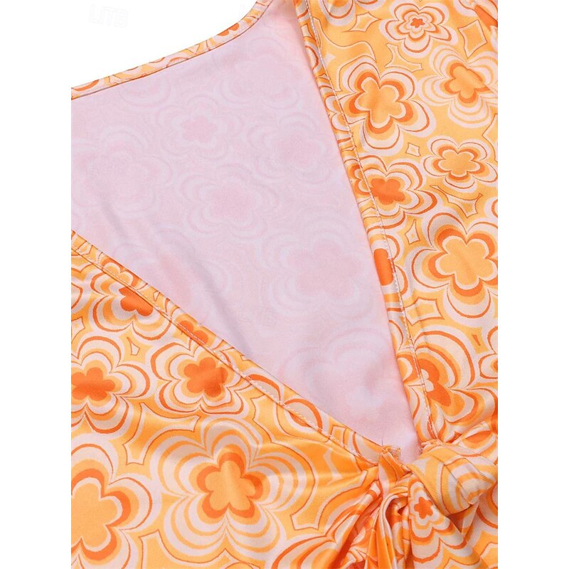 Retro Vintage 1970s Outfits Crop Top Bell Bottom Pants Hippie Bow Tie Floral Fancy Dress Women's Halloween Carnival Masquerade Party Daily Wear Adults' Top Pants Spring & Summer 1