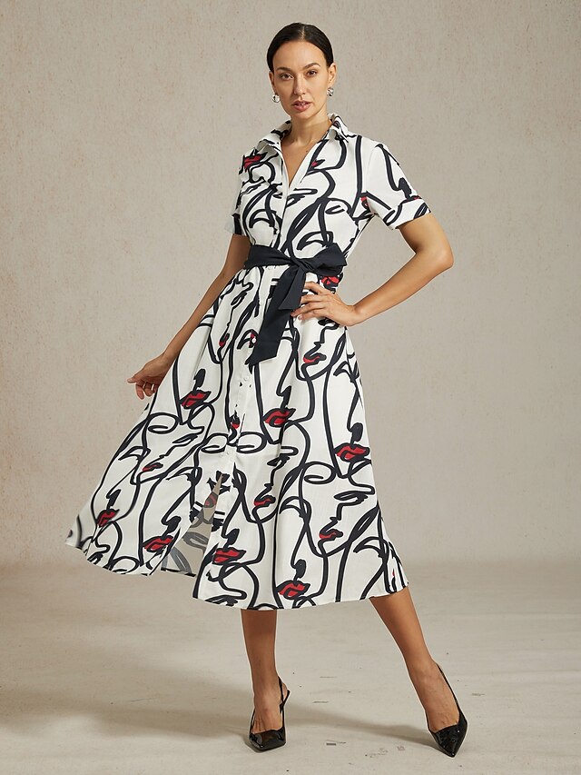 More information about Women's Maxi Dress Shirt Abstract Face Art Short Sleeve Casual Vacation Spring Summer
