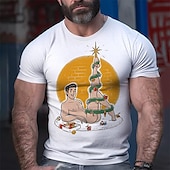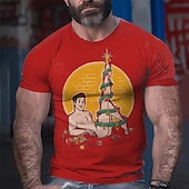 HOT ! Mens Funny Human Christmas Tree Graphic T-Shirt Short Sleeve Novelty Holiday Top
