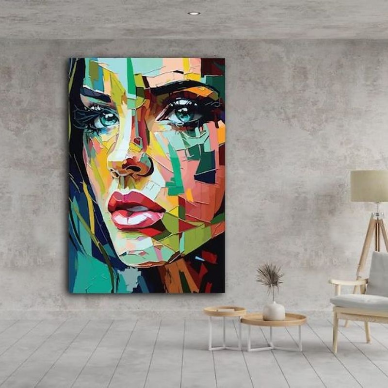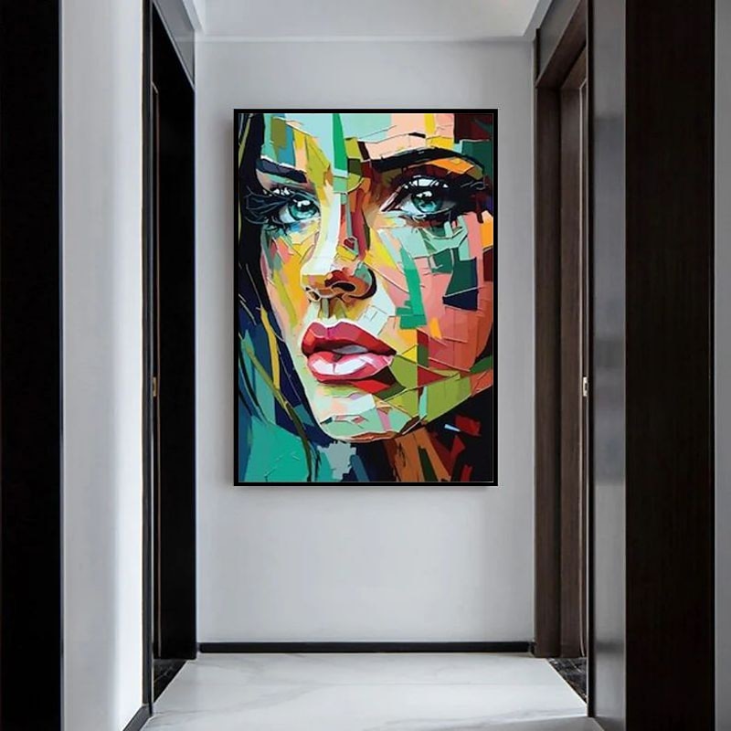 Handmade Oil Painting Acrylic Canvas Wall Art Decoration Portrait Face Abstract Knife Draw for Home Decor Rolled Frameless Unstretched Painting 1