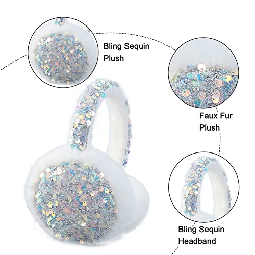 ACTLATI Girl Winter Earmuffs Sequin Shiny Outdoor Ear Warmers Fluffy Muffs Cute Faux Fur Earmuff for Kids Adult Women 7
