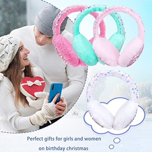 ACTLATI Girl Winter Earmuffs Sequin Shiny Outdoor Ear Warmers Fluffy Muffs Cute Faux Fur Earmuff for Kids Adult Women 3
