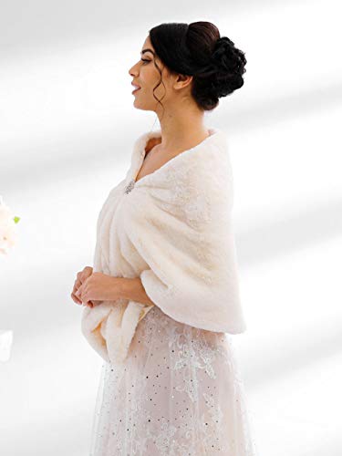 Jovono Women's Bride Wedding Faux Fur Shawl Wrap Bridal Fur Scarf Fur Wraps and Shawls for Women 5