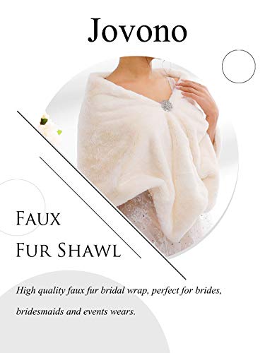 HOT ! Jovono Women's Bride Wedding Faux Fur Shawl Wrap Bridal Fur Scarf Fur Wraps and Shawls for Women